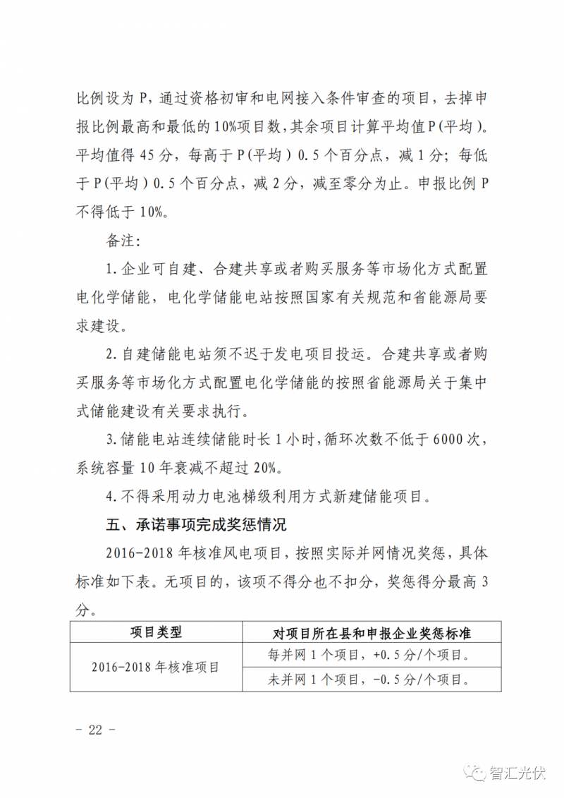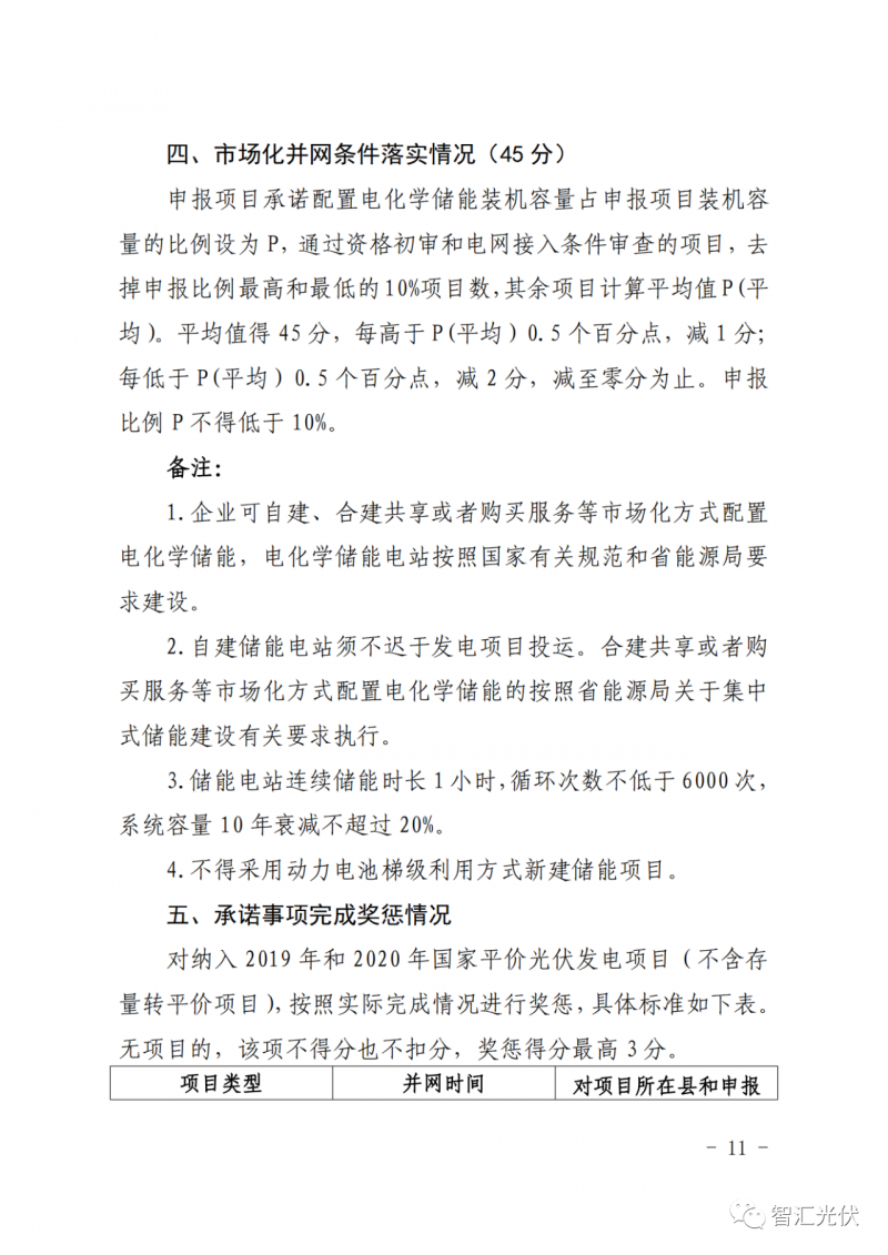 對于保障性規(guī)模,競爭性配置中未要求競電價、配置儲能項(xiàng)為45分,要求1小時、6000次。