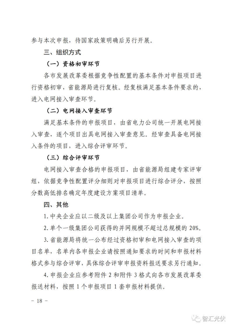 4)光伏項(xiàng)目:單個申報項(xiàng)目規(guī)模原則上不超過 20 萬千瓦。單個一級集團(tuán)公司第一次獲得的并網(wǎng)規(guī)模不超過該次競爭性配置規(guī)模的 20%,兩次累加獲得的并網(wǎng)規(guī)模不超過總規(guī)模的20%。