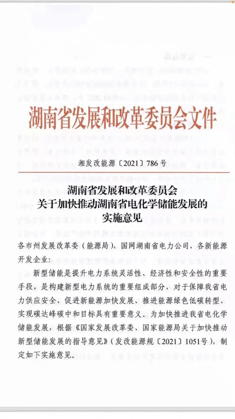 10月13日,湖南省發(fā)改委下發(fā)《關(guān)于加快推動(dòng)湖南省電化學(xué)儲(chǔ)能發(fā)展的實(shí)施意見(jiàn)》,文件明確以發(fā)展電網(wǎng)側(cè)獨(dú)立儲(chǔ)能為重點(diǎn),集中規(guī)劃建設(shè)一批電網(wǎng)側(cè)儲(chǔ)能電站,力爭(zhēng)到2023年建成電化學(xué)儲(chǔ)能電站150萬(wàn)千瓦/300萬(wàn)千瓦時(shí)以上。