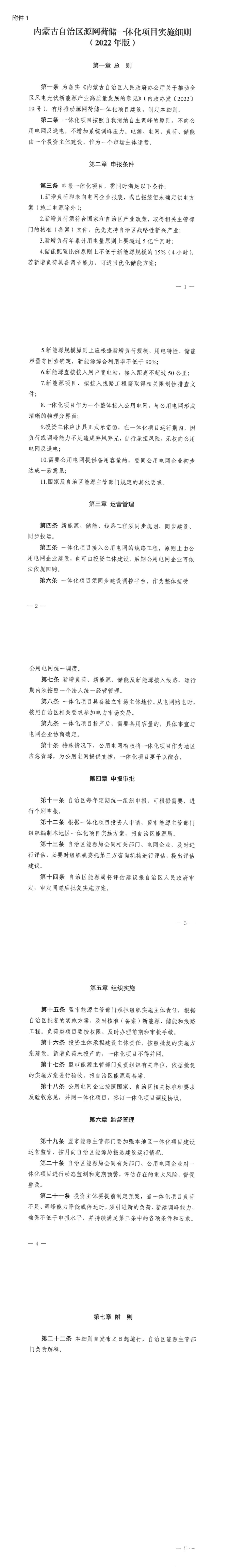 7月27日,內(nèi)蒙古能源局發(fā)布《內(nèi)蒙古自治區(qū)源網(wǎng)荷儲一體化項目實施細則(2022年版)》,其中提出,一體化項目按照自我消納自主調(diào)峰的原則,不向公用電網(wǎng)反送電,不增加系統(tǒng)調(diào)峰壓力。電源、電網(wǎng)、負荷、儲能由一個投資主體建設(shè),作為一個市場主體運營。