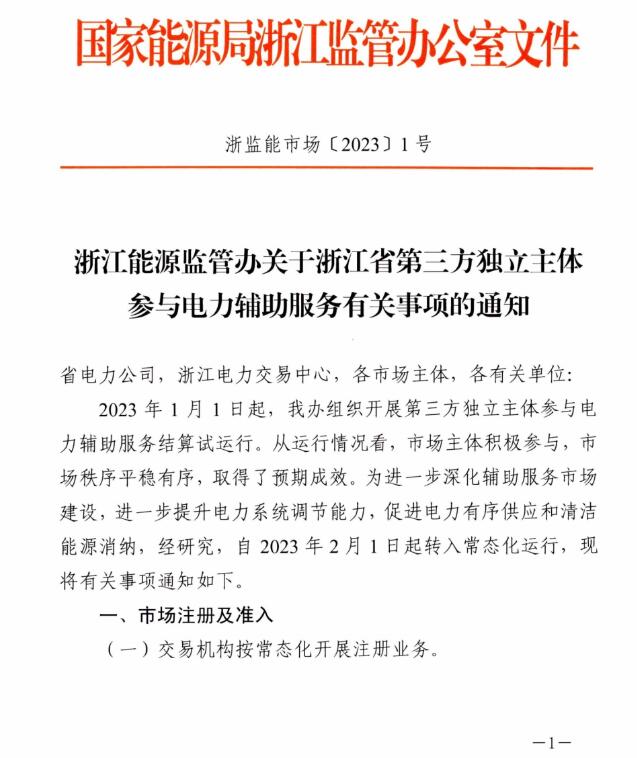 2月1日,國家能源局浙江能源監(jiān)管辦發(fā)布了關(guān)于浙江省第三方獨立主體參與電力輔助服務(wù)有關(guān)事項的通知。