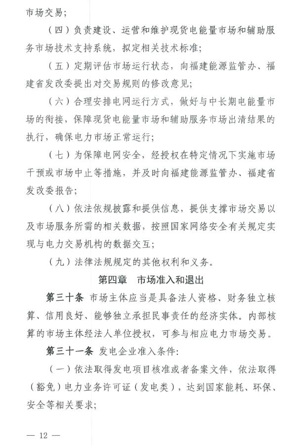 《福建電力市場(chǎng)運(yùn)營(yíng)基本規(guī)則(試行)》原文如下: