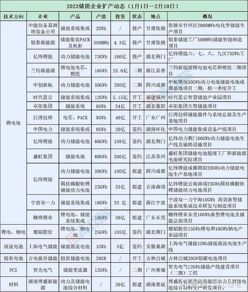2023開年以來,儲能行業(yè)迎來新一輪擴產(chǎn)高峰,產(chǎn)業(yè)鏈上下游近二十家企業(yè)宣布最新儲能項目建設(shè)規(guī)劃。同時,2022年落地開工的多項儲能產(chǎn)線建設(shè)項目,有望在一季度陸續(xù)迎來投產(chǎn),貫穿2022全年的電芯供應(yīng)緊張局面有望得到緩解。