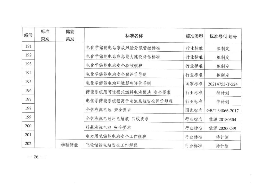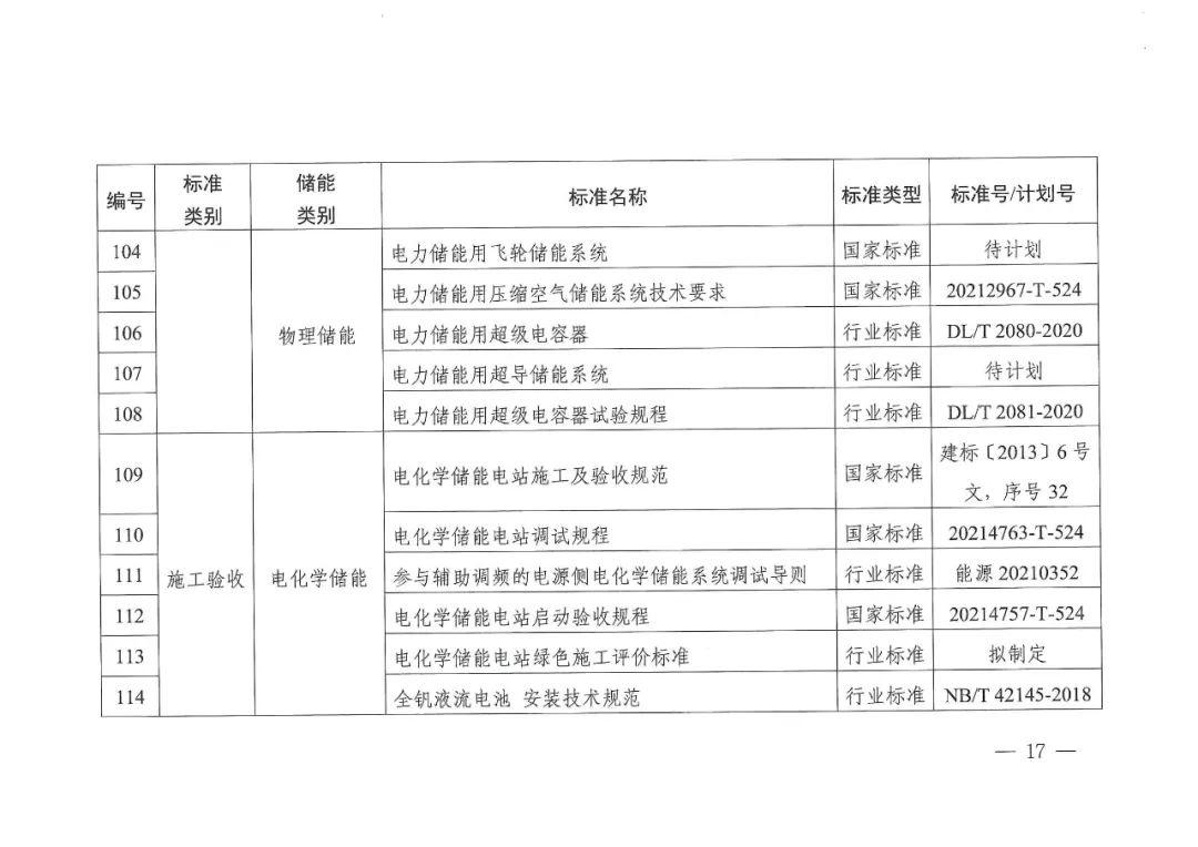 文件提出,2023年制修訂100項(xiàng)以上新型儲(chǔ)能重點(diǎn)標(biāo)準(zhǔn),加快制修訂設(shè)計(jì)規(guī)范、安全規(guī)程、施工及驗(yàn)收等儲(chǔ)能電站標(biāo)準(zhǔn),開展儲(chǔ)能電站安全標(biāo)準(zhǔn)、應(yīng)急管理、消防等標(biāo)準(zhǔn)預(yù)研,盡快建立完善安全標(biāo)準(zhǔn)體系,結(jié)合新型電力系統(tǒng)建設(shè)需求,初步形成新型儲(chǔ)能標(biāo)準(zhǔn)體系,基本能夠支撐新型儲(chǔ)能行業(yè)商業(yè)化發(fā)展。