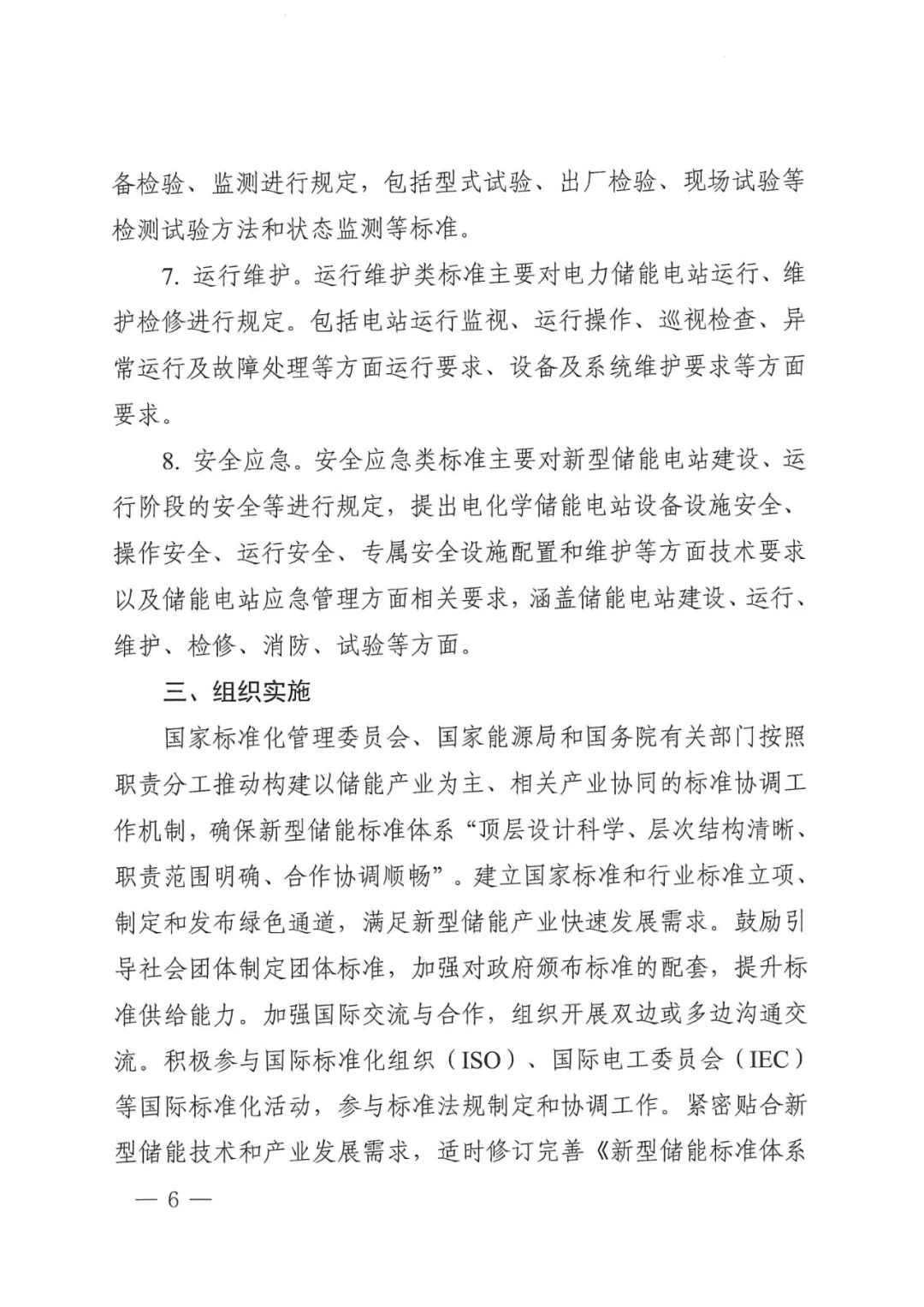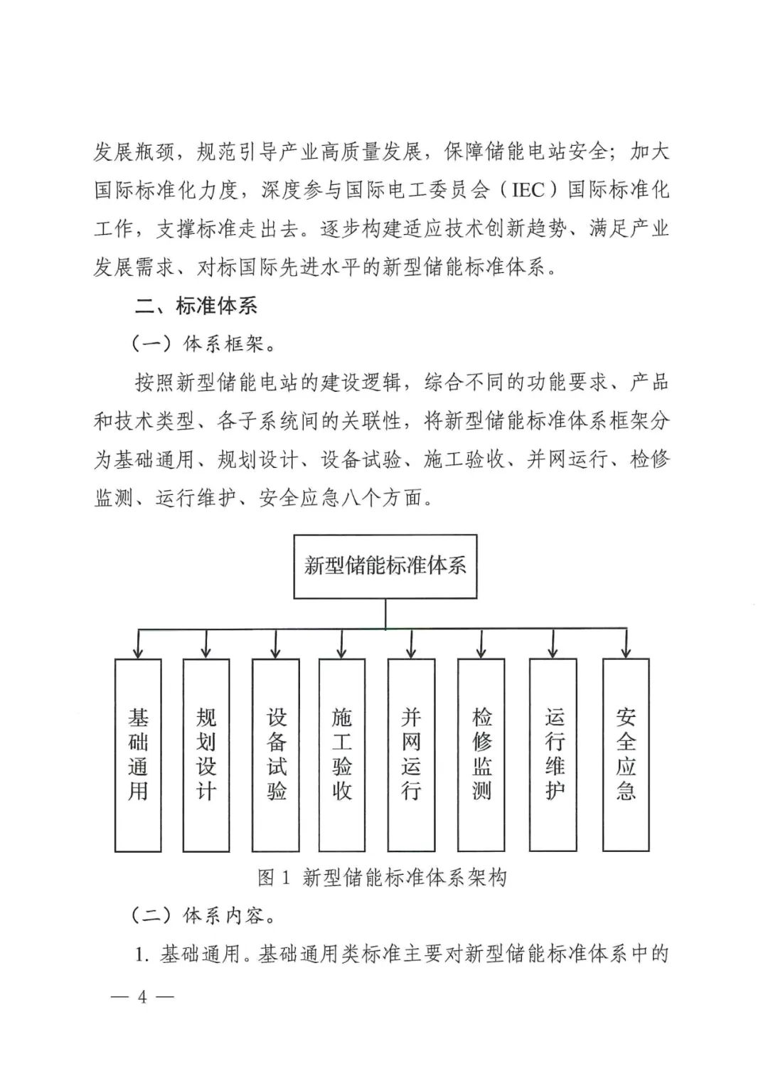 到2025年,在電化學(xué)儲(chǔ)能、壓縮空氣儲(chǔ)能、可逆燃料電池儲(chǔ)能、超級電容儲(chǔ)能、飛輪儲(chǔ)能、超導(dǎo)儲(chǔ)能等領(lǐng)域形成較為完善的系列標(biāo)準(zhǔn);加強(qiáng)與國內(nèi)外標(biāo)準(zhǔn)化組織技術(shù)交流,著力打破產(chǎn)業(yè)發(fā)展瓶頸,規(guī)范引導(dǎo)產(chǎn)業(yè)高質(zhì)量發(fā)展,保障儲(chǔ)能電站安全;加大國際標(biāo)準(zhǔn)化力度, 深度參與國際電工委員會(huì)(IEC) 國際標(biāo)準(zhǔn)化工作,支撐標(biāo)準(zhǔn)走出去。逐步構(gòu)建適應(yīng)技術(shù)創(chuàng)新趨勢、滿足產(chǎn)業(yè)發(fā)展需求、對標(biāo)國際先進(jìn)水平的新型儲(chǔ)能標(biāo)準(zhǔn)體系。