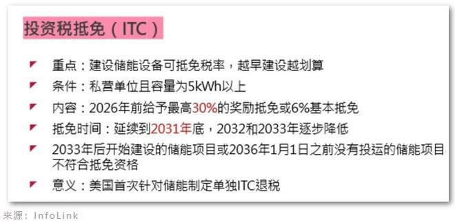 對于儲(chǔ)能來說,這是美國首次針對獨(dú)立儲(chǔ)能進(jìn)行投資稅抵免(Investment Tax Credit, ITC)。