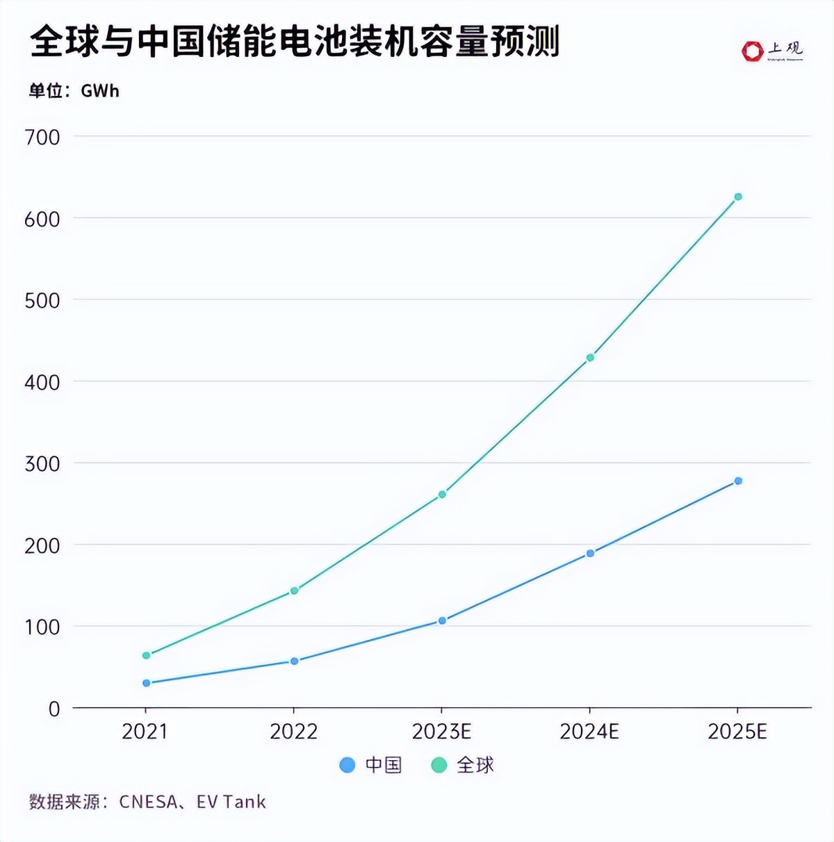 中國鋰電池儲能產(chǎn)業(yè)正在快速擴(kuò)張。根據(jù)中關(guān)村儲能產(chǎn)業(yè)技術(shù)聯(lián)盟和ev tank的預(yù)測,2025年中國儲能電池裝機(jī)容量將達(dá)到276.8吉瓦時,占全球近45%。當(dāng)前,國內(nèi)傳統(tǒng)鋰電池龍頭企業(yè),如寧德時代、比亞迪、億緯鋰能等,在儲能方面多有布局。
