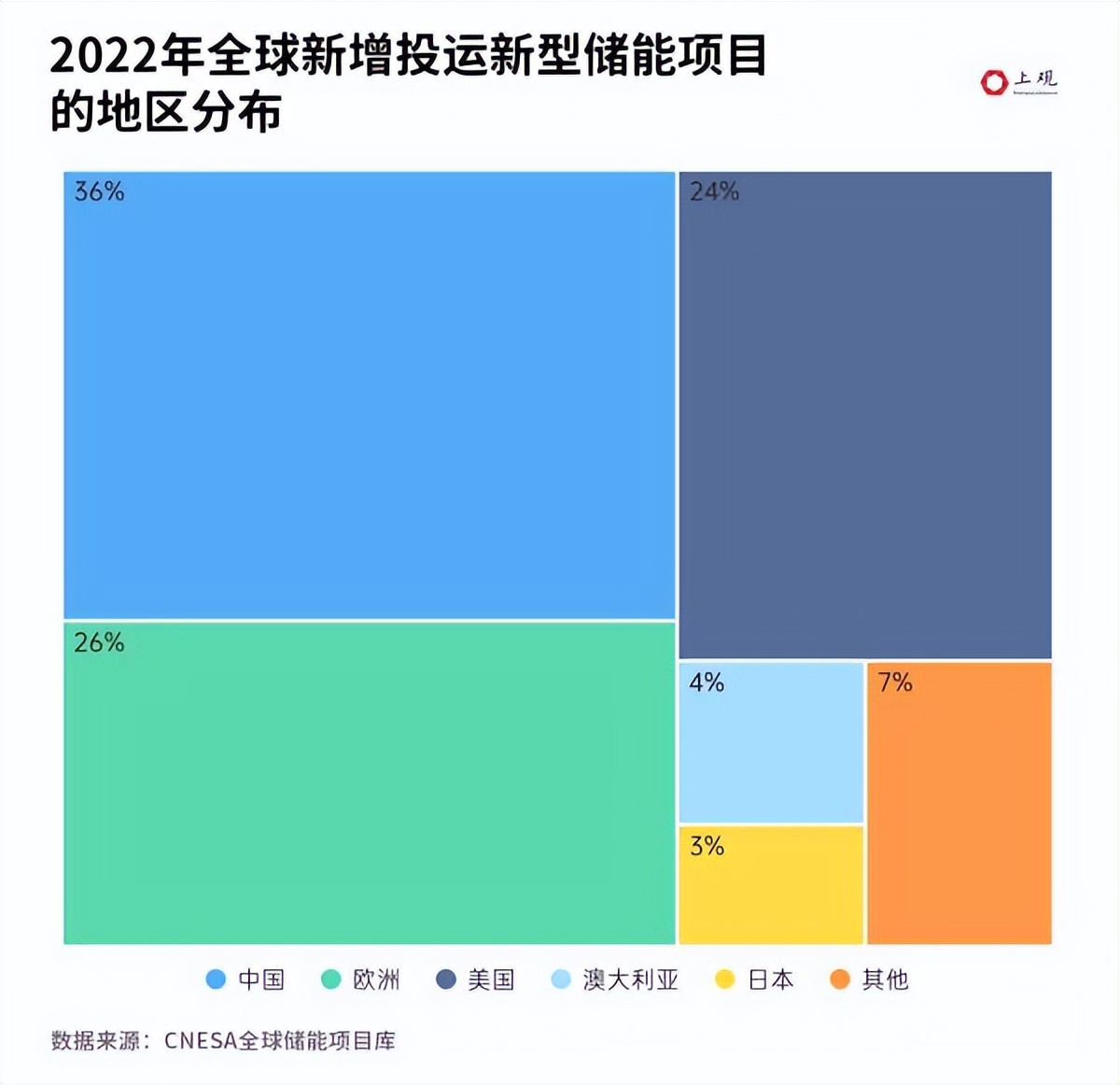 中國也是全球儲能市場發(fā)展的主力軍。據(jù)統(tǒng)計(jì),在全球已投運(yùn)電力儲能項(xiàng)目累計(jì)裝機(jī)規(guī)模中,2022年中國占四分之一,且依舊保持著較高的年增長率(38%)。2022年,以鋰電池儲能為代表的新型儲能在中國新增7.3吉瓦/15.9吉瓦時,占比全球第一(36%)。