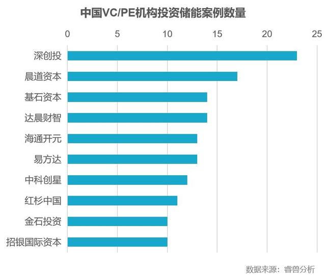 睿獸分析數(shù)據(jù)顯示,深創(chuàng)投、晨道資本、基石資本、達(dá)晨財(cái)智等VC/PE機(jī)構(gòu)投資儲(chǔ)能產(chǎn)業(yè)比較活躍,投資領(lǐng)域涉及上游材料、動(dòng)力電池、儲(chǔ)能系統(tǒng)、工商業(yè)儲(chǔ)能、電池回收利用等領(lǐng)域,基本涵蓋儲(chǔ)能全產(chǎn)業(yè)鏈。
