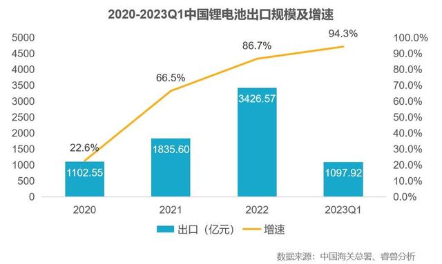 鋰電池成為新的出口增長點(diǎn),2023年一季度鋰電池出口增長94.3%