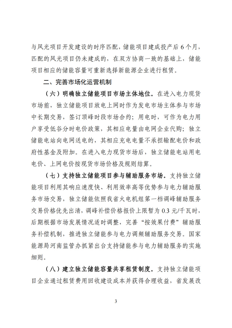 為統(tǒng)籌做好儲能項目與風光項目開發(fā)建設的時序匹配,儲能項目建成投產后6個月,匹配的風光項目仍未建成的,在雙方協(xié)商一致的基礎上,儲能項目相應的儲能容量可重新選擇新能源企業(yè)進行租賃。
