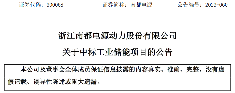 南都電源于5月5日發(fā)布公告稱,浙江南都電源動力股份有限公司于近日收到招標人中國移動通信有限公司和招標代理機構(gòu)北京煜金橋通信建設(shè)監(jiān)理咨詢有限責(zé)任公司發(fā)來的中標通知書,確認公司為中國移動2022年至2024年通信用磷酸鐵鋰電池產(chǎn)品集中采購項目的中標單位,中標金額(含稅)約為2.34億元(實際金額以后續(xù)執(zhí)行情況為準)。中標項目基本情況如下: