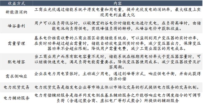 同時,工商業(yè)儲能電站收益方式相對多樣,具有保障分布式能源消納、峰谷套利、需量管理、配電增容、需求側(cè)響應(yīng)、參與電力現(xiàn)貨市場交易、參與電力輔助服務(wù)等多種現(xiàn)存與潛在受益方式。