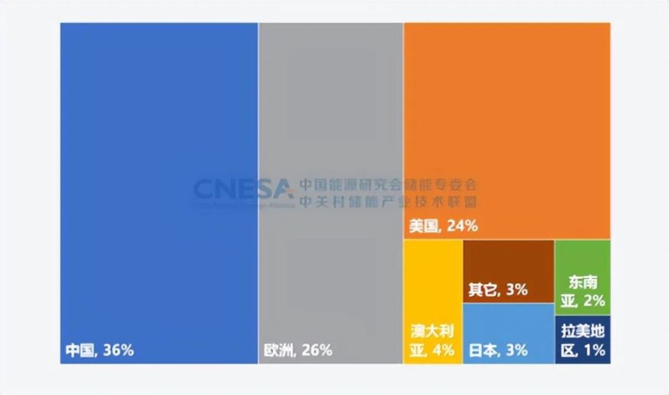 圖表 8:2022年全球新增投運新型儲能項目的地區(qū)分布 單位:%