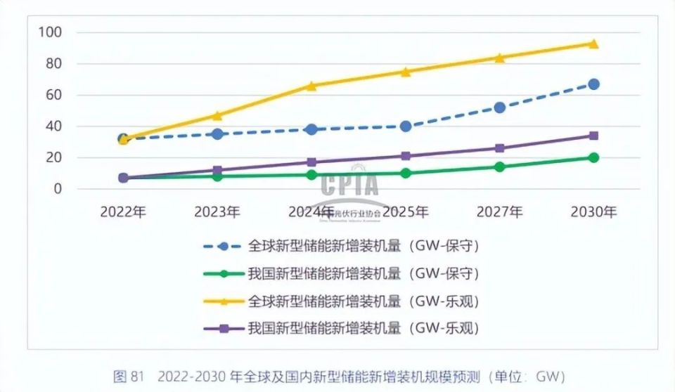 據(jù)中國光伏行業(yè)協(xié)會(CPIA)的統(tǒng)計,2022年全球及國內(nèi)新型儲能新增裝機約為32GW、7GW,創(chuàng)歷史新高。隨著政策執(zhí)行、成本下降和技術(shù)改進,新型儲能將更能滿足發(fā)電側(cè)、電網(wǎng)側(cè)、用戶側(cè)的電力儲能需求。預(yù)計2025年,全球及我國新型儲能年度新增裝機或分別超過40GW、10GW,有望達到75GW、21GW。