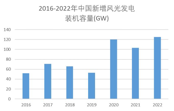 中國新增風(fēng)光發(fā)電裝機容量圖