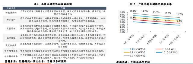 以廣東為代表的工商業(yè)較為發(fā)達(dá)的地區(qū)工商業(yè)儲能電站已經(jīng)具備了一定經(jīng)濟(jì)性。在廣東地區(qū),在僅考慮峰谷價(jià)差套利單一受益方式的情況下, 工商業(yè)儲能電站通過每天兩充兩放(一次谷充尖放、一次平充峰放),初始投資成本為1.6元/Wh,最大峰谷價(jià)差在1.1元/度的情況下,其資 本金收益率可達(dá)9.4%,投資回收期在8年之內(nèi)。在鋰電成本持續(xù)下降的情況下,改投資回收期有望進(jìn)一步縮短。