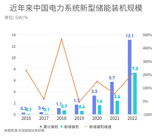 《儲能產(chǎn)業(yè)研究白皮書2023》指出,據(jù)不完全統(tǒng)計,截至2022年底,中國新型儲能累計裝機規(guī)模首次突破10GW,達(dá)到13.1GW/27.1GWh,功率規(guī)模年增長率達(dá)128%,能量規(guī)模年增長率達(dá)141%。