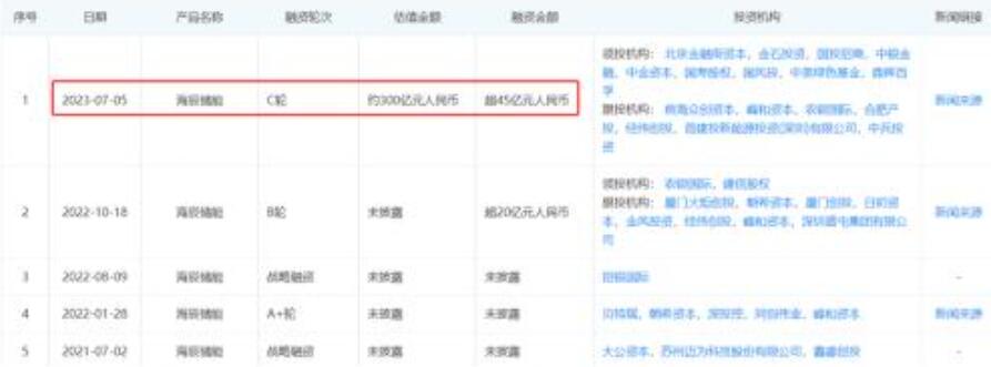 (海辰儲能歷次融資情況,圖片來源:企查查)