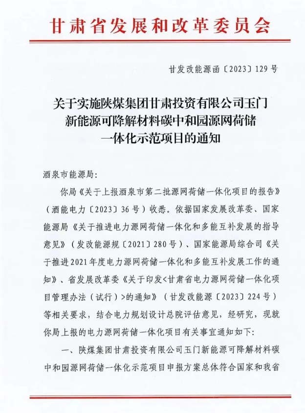 近日,從甘肅省發(fā)改委傳來喜訊,由陜煤集團(tuán)甘肅投資有限公司(以下簡稱:甘肅投資公司)申報的“玉門新能源可降解材料碳中和產(chǎn)業(yè)園源網(wǎng)荷儲一體化項目”獲批,標(biāo)志著全國最大、陜煤集團(tuán)“十四五”發(fā)展規(guī)劃首批、甘肅投資公司首個源網(wǎng)荷儲一體化項目正式落地。