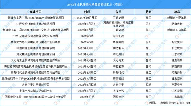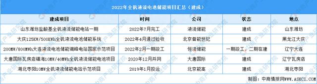 全釩液流電池具有響應(yīng)快、安全環(huán)保、壽命長、規(guī)模大等特點(diǎn),適合長時儲能,市場發(fā)展空間廣闊。2022年,我國全釩液流電池儲能項目中,建成項目5個,在建項目14個。
