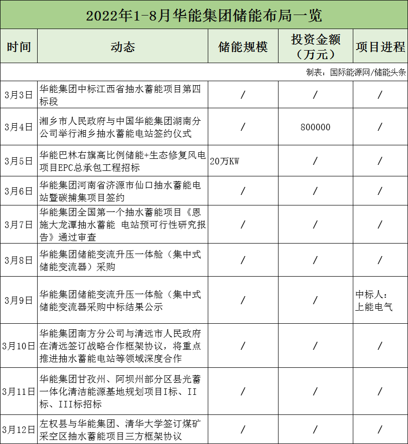 2022年,華能集團(tuán)全國(guó)第一個(gè)抽水蓄能項(xiàng)目《恩施大龍?zhí)冻樗钅茈娬绢A(yù)可行性研究報(bào)告》通過審查;與湘鄉(xiāng)市、左權(quán)縣等地簽訂抽水蓄能項(xiàng)目合作協(xié)議,儲(chǔ)能項(xiàng)目招標(biāo)4個(gè),涉及儲(chǔ)能變流器、光蓄一體化等方面。