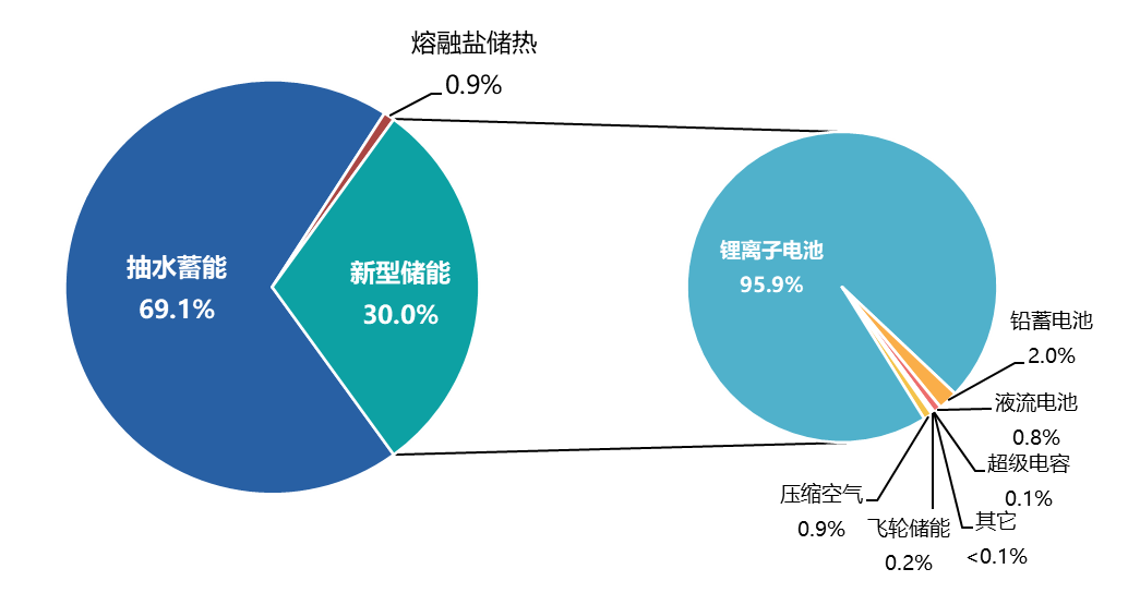 新型儲能是指除抽水蓄能以外的新型儲能技術(shù),包括鋰離子電池、液流電池、壓縮空氣、飛輪儲能、儲熱蓄冷、氫儲能等。