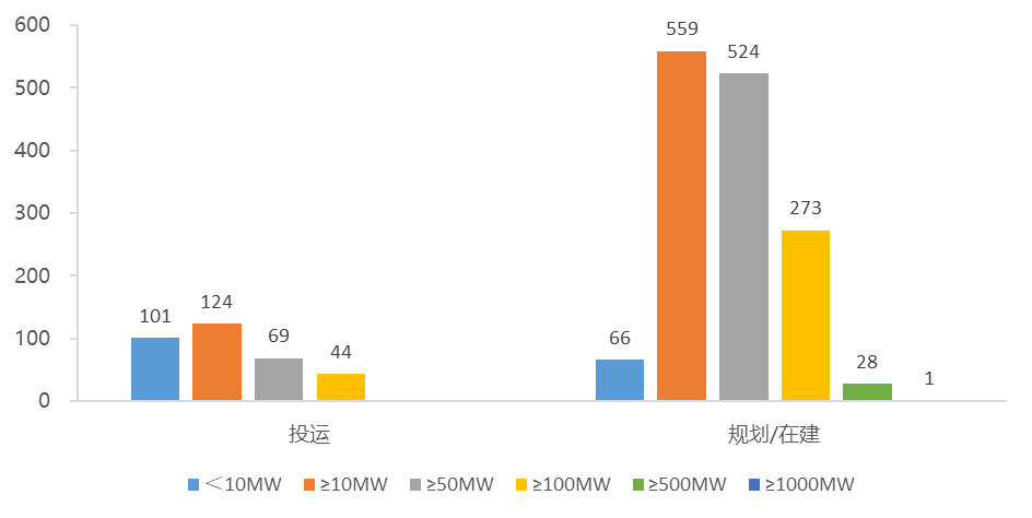 各功率等級項(xiàng)目數(shù)量分布情況(2023年1-6月份)