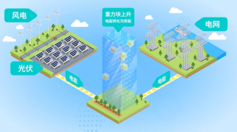 這是一種新型儲(chǔ)能技術(shù),其原理是利用構(gòu)筑物、自然或人工地形等產(chǎn)生的高度差,通過(guò)人工智能算法控制儲(chǔ)能塊的垂直提升和水平位移,實(shí)現(xiàn)勢(shì)能與電能的轉(zhuǎn)換。