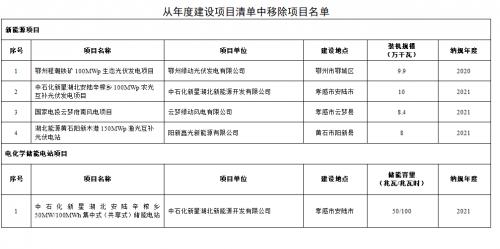 通知指出,為杜絕能源指標(biāo)空轉(zhuǎn)、項(xiàng)目不落地等現(xiàn)象發(fā)生,湖北省能源局組織各地對納入2021年及以前年度建設(shè)項(xiàng)目清單的平價(jià)項(xiàng)目進(jìn)行了清理,將4個(gè)風(fēng)光發(fā)電項(xiàng)目及配建的1個(gè)集中式(共享式)電化學(xué)儲(chǔ)能電站項(xiàng)目從原年度建設(shè)項(xiàng)目清單中移除。其他未開工項(xiàng)目暫時(shí)保留建設(shè)指標(biāo),各地應(yīng)組織項(xiàng)目單位抓緊落實(shí)前期條件,確保年底前開工建設(shè)。從年度建設(shè)項(xiàng)目清單中移除項(xiàng)目名單如下: