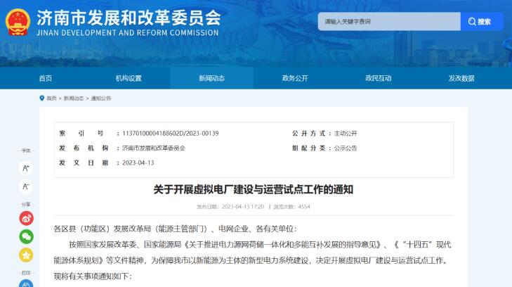 濟(jì)南開(kāi)展虛擬電廠建設(shè)運(yùn)營(yíng)試點(diǎn)工作 來(lái)源:濟(jì)南市發(fā)改委
