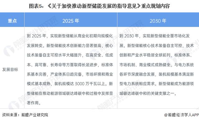 國(guó)家發(fā)展改革委、國(guó)家能源局聯(lián)合印發(fā)了《關(guān)于加快推動(dòng)新型儲(chǔ)能發(fā)展的指導(dǎo)意見》,提出到2025年,實(shí)現(xiàn)新型儲(chǔ)能從商業(yè)化初期向規(guī)?;l(fā)展轉(zhuǎn)變。新型儲(chǔ)能技術(shù)創(chuàng)新能力顯著提高,核心技術(shù)裝備自主可控水平大幅提升,在高安全、低成本、高可靠、長(zhǎng)壽命等方面取得長(zhǎng)足進(jìn)步,標(biāo)準(zhǔn)體系基本完善,產(chǎn)業(yè)體系日趨完備,市場(chǎng)環(huán)境和商業(yè)模式基本成熟,裝機(jī)規(guī)模達(dá)3000萬千瓦以上。到2030年,實(shí)現(xiàn)新型儲(chǔ)能全面市場(chǎng)化發(fā)展。新型儲(chǔ)能核心技術(shù)裝備自主可控,技術(shù)創(chuàng)新和產(chǎn)業(yè)水平穩(wěn)居全球前列,標(biāo)準(zhǔn)體系、市場(chǎng)機(jī)制、商業(yè)模式成熟健全,與電力系統(tǒng)各環(huán)節(jié)深度融合發(fā)展,裝機(jī)規(guī)模基本滿足新型電力系統(tǒng)相應(yīng)需求。新型儲(chǔ)能在推動(dòng)能源領(lǐng)域碳達(dá)峰、碳中和過程中發(fā)揮顯著作用。新型儲(chǔ)能成為能源領(lǐng)域碳達(dá)峰、碳中和的關(guān)鍵支撐之一。