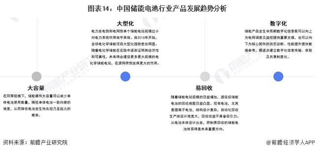 隨著中國(guó)儲(chǔ)能電池行業(yè)的快速發(fā)展,大容量、大型化、易回收和數(shù)字化將成為儲(chǔ)能電池主要的發(fā)展方向。在大容量方面,同等規(guī)模下儲(chǔ)能器件的大容量可以減少單體電池使用數(shù)量,降低單體電池一致均衡的難度,從而降低電池發(fā)生熱失控乃至起火的概率;在大型化方面,大型化是配置靈活的電化學(xué)儲(chǔ)能技術(shù)在電力系統(tǒng)中發(fā)揮主導(dǎo)的作用的必經(jīng)之路;在易回收方面,研制易回收的儲(chǔ)能電池體系,使回收收益具備吸引力是未來發(fā)展大方向;在數(shù)字化方面,儲(chǔ)能產(chǎn)品全生命周期數(shù)字化信息既可以向上為電網(wǎng)調(diào)度及監(jiān)控提供重要支撐,也可以向下為核心部件的狀態(tài)診斷、性能提升提供數(shù)據(jù)參考。
