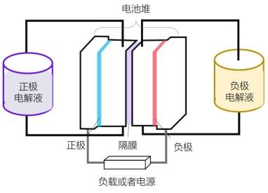 液流電池作為電化學(xué)儲(chǔ)能技術(shù)之一,其將陰陽極電解液分別通過管路推入電堆中,通過活性元素的價(jià)態(tài)變化,在電能和化學(xué)能之間產(chǎn)生轉(zhuǎn)換來實(shí)現(xiàn)充放電。由于液流電池是將能量儲(chǔ)存于水性電解液中,且能量轉(zhuǎn)化不依賴于固體電極,因此沒有燃燒爆炸的風(fēng)險(xiǎn),符合儲(chǔ)能的安全需求。