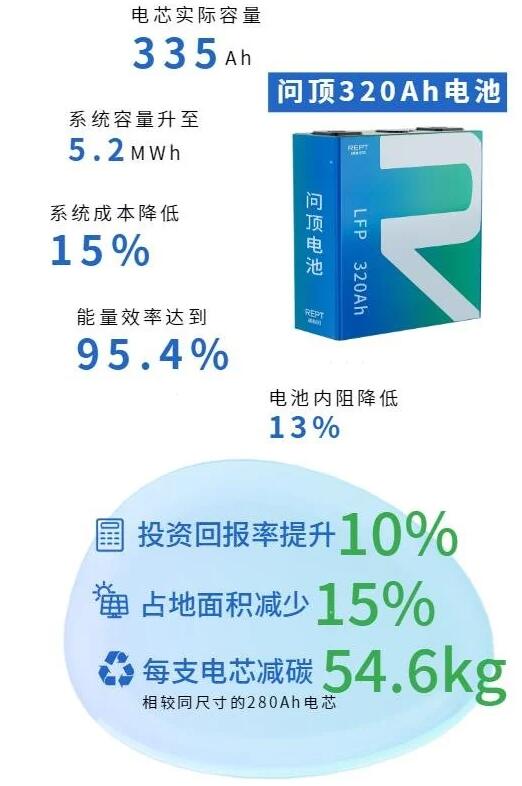 也就是說,當瑞浦蘭鈞 320Ah 問頂儲能電池進行規(guī)?;褂脮r,可實現(xiàn)系統(tǒng)成本降低 15%,占地面積減少 15%,投資回報率提升 10% 的目標,能極大提升客戶產(chǎn)品的市場競爭力,降低企業(yè)的周期性成本和資金風險。此外,每支 320Ah 問頂電池相較同尺寸的 280Ah 電池可減碳 54.6kg,實現(xiàn)減碳減排,助力碳中和。