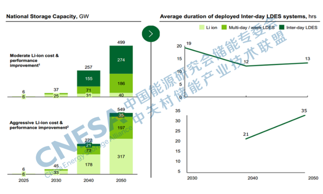 圖2:2050年實(shí)現(xiàn)BAU和Net Zero脫碳目標(biāo)下的LDES預(yù)測