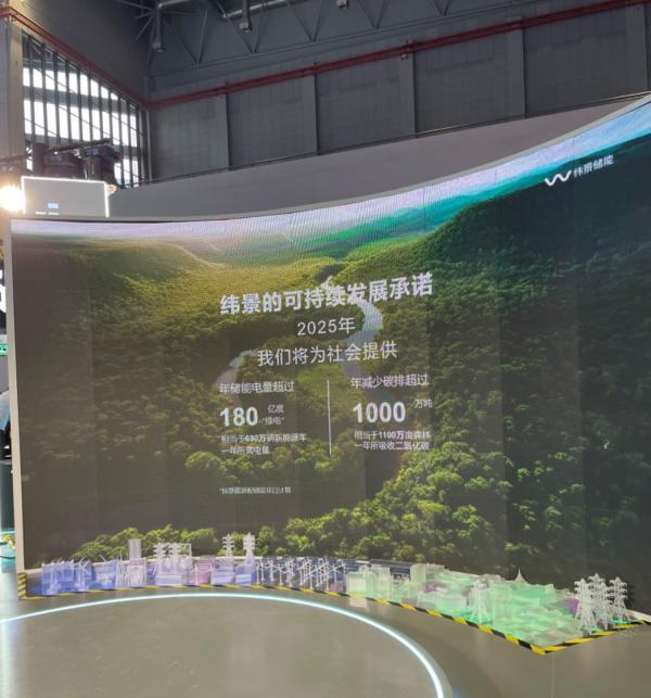 11月6日,澎湃新聞?dòng)浾邚木暰皟?chǔ)能位于進(jìn)博會(huì)的展臺(tái)現(xiàn)場了解到,緯景儲(chǔ)能承諾 從2025年起為社會(huì)提供超過180億度的年儲(chǔ)能電量,相當(dāng)于690萬輛新能源車一年所需電量,年減少碳排放超過1000萬噸,相當(dāng)于1000萬畝森林一年所吸收的二氧化碳。
