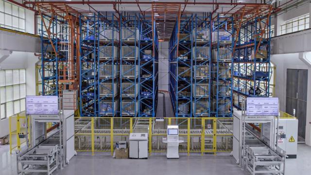 為了更好地提升倉內(nèi)空間利用率,在進(jìn)行現(xiàn)場(chǎng)測(cè)量與規(guī)劃后,京東物流通過投入使用堆垛機(jī)、智能升降貨柜、料箱AGV等智能設(shè)備為其進(jìn)行了一系列軟硬件改造升級(jí),最大程度利用場(chǎng)地空間,建設(shè)超萬個(gè)儲(chǔ)位,儲(chǔ)位最高可放置重量達(dá)1000公斤的物資。與此同時(shí),京東物流還全面利用人臉識(shí)別技術(shù),語音播報(bào)、燈光指引、智能墨水屏、重力式感應(yīng)貨架等硬件,部署智能軟件系統(tǒng),實(shí)現(xiàn)24小時(shí)無人化值守,提高領(lǐng)料效率,確保安全生產(chǎn)。