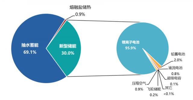 新型儲(chǔ)能是指除抽水蓄能以外的新型儲(chǔ)能技術(shù),包括鋰離子電池、液流電池、壓縮空氣、飛輪儲(chǔ)能、儲(chǔ)熱蓄冷、氫儲(chǔ)能等。相較于傳統(tǒng)抽水蓄能,新型儲(chǔ)能具有響應(yīng)速度快、建設(shè)周期短、調(diào)節(jié)性能高、選址布局靈活等優(yōu)勢。既可以發(fā)揮傳統(tǒng)儲(chǔ)能的“蓄水池”作用,在新能源發(fā)電量多的時(shí)候?qū)⒍嘤嚯娏績?chǔ)存;又可以發(fā)揮“充電寶”的效用,在發(fā)電量少的時(shí)候,向電網(wǎng)送電,促使整體電力系統(tǒng)安全穩(wěn)定運(yùn)行。