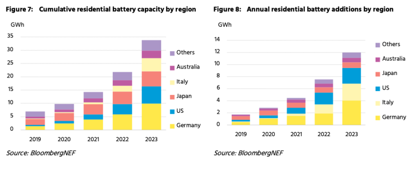 近年來,全球戶用電池儲能市場發(fā)展迅猛。其主要的進(jìn)展集中在包括德國、意大利、日本、美國和澳大利亞在內(nèi)的數(shù)個領(lǐng)軍市場?! ∨聿┬履茉簇斀?jīng)(Bloomberg NEF)在《全球戶儲市場白皮書》中預(yù)計,至2023年年底,這五個市場的戶用電池儲能裝機(jī)容量將占全球累計裝機(jī)容量的約88%。