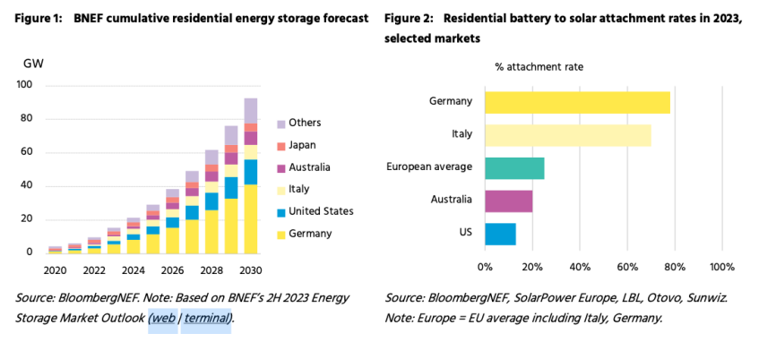 圖1:BNEF累計戶用儲能預(yù)期 圖2:2023年太陽能電池安裝率,選定市場