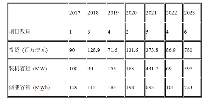 澳大利亞清潔能源委員會(huì)報(bào)告中的一個(gè)表格表明,就調(diào)試和投資金額而言,2023年將成為迄今為止大型電池儲(chǔ)能系統(tǒng)投資規(guī)模最大的一年: