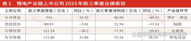 同樣,產業(yè)鏈上下游其他公司業(yè)績乏善可陳:鋰礦龍頭企業(yè)天齊鋰業(yè)前三季度歸母凈利潤同比跌幅近50%,隔膜龍頭企業(yè)恩捷股份歸母凈利潤同比跌幅近三分之一,電解液龍頭企業(yè)天賜材料歸母凈利潤同比跌幅近60%。