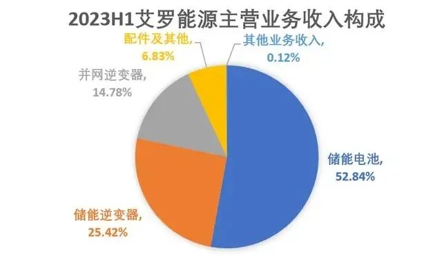 根據(jù)招股書披露,艾羅能源的主營(yíng)業(yè)務(wù)結(jié)構(gòu)如下圖所示,2023年1-6月公司各項(xiàng)產(chǎn)品中儲(chǔ)能逆變器收入占比25.42%;儲(chǔ)能電池收入占比52.84%,并網(wǎng)逆變器收入占比14.78%,配件及其他收入占比6.83%。