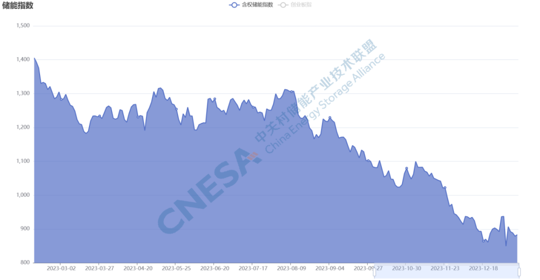 整體上,2023年儲(chǔ)能指數(shù)呈現(xiàn)高開(kāi)低走的局面。