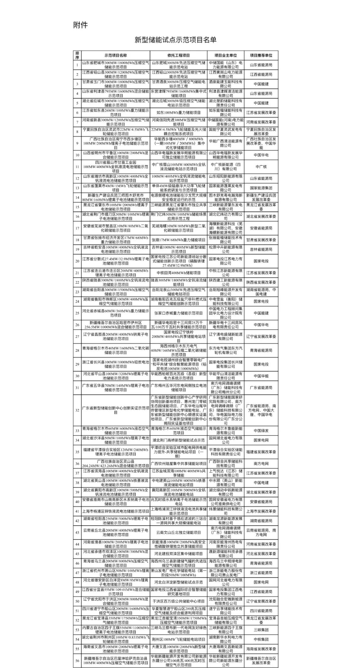 一、經項目單位申報,有關省級能源主管部門和中央企業(yè)匯總推薦,國家能源局組織專家評審,并公示征求各方面意見,決定將“山東省肥城市300MW/1800MWh壓縮空氣儲能示范項目”等56個項目列為新型儲能試點示范項目。