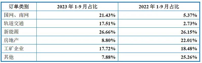 截至2023年9月末,公司在手訂單達到6.81億元,公司在手訂單充足。下圖可以看出,公司來自新能源和國網等大型客戶的訂單占比明顯提高。2023年公司市場開拓重心主要是新能源和國網南網等大型集團客戶、大型項目,2023年1—9月新增訂單結構占比情況如下: