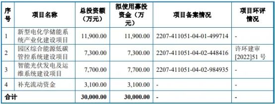 許昌智能成立于2009年,脫胎與許繼集團,目前主營業(yè)務為智能配用電產品、新能源產品和系統(tǒng)的研發(fā)、設計、組裝、銷售和服務,以及電力工程總承包業(yè)務。 根據許昌智能2024年1月15日披露的招股書顯示,公司擬募集資金30,000.00萬元,計劃用于新型電化學儲能系統(tǒng)產業(yè)化建設項目、園區(qū)綜合能源低碳管控系統(tǒng)建設項目、智能光伏發(fā)電及運維系統(tǒng)建設項目、補充流動資金。