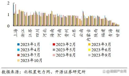 圖:2023年起國(guó)內(nèi)峰谷電價(jià)差呈拉大趨勢(shì)