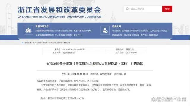2月7日,浙江省能源局印發(fā)《浙江省新型儲(chǔ)能項(xiàng)目管理辦法(試行)》(以下簡(jiǎn)稱《管理辦法》),文件為規(guī)范浙江省新型儲(chǔ)能項(xiàng)目管理,促進(jìn)新型儲(chǔ)能安全、有序、健康發(fā)展。